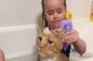 お風呂もご一緒しますし。子供たちと一緒にお風呂に入る茶トラ猫