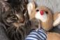 小さなお布団でうとうと。ぬいぐるみと添い寝する子猫のいる風景