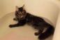 メインクーンのアナキンさん、お風呂でゆっくりくつろぐ姿を見せる