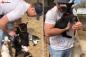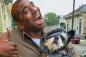 配達ルートにある家の飼い犬たちを抱き、笑顔で仲良し写真を撮影する超犬好き配達員(アメリカ)