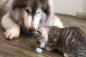猫が氷という物質について学んでいたところ、氷大好きなハスキーが動いた奪い愛の瞬間