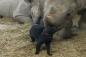 サイの飼育小屋で一緒に暮らす黒猫。今日もスリスリらぶりんちょムード(チェコ共和国)