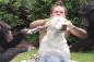 こんな夏の風物詩が見たかった。チンパンジー2頭と人間がタッグを組んで犬をゴシゴシ丸洗い