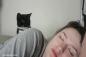 やっぱ心配だから添い寝しとくわ。前足を怪我した猫にぴったり張り付くミーアキャット