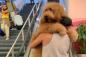 エスカレーターが怖いので…飼い主に当然のごとく抱っこしてもらうゴールデンドゥードル