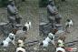 これを投げて!彫像に遊んでほしくて木の棒を何度も渡そうとする犬