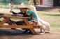 ペリカンにロックオンされた男性。食事中にくちばしの袋を頭にすっぽり被せられる