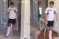 犬の共感力がすごい!松葉杖で歩く少年の後ろから同じように片足を引きずって歩く犬