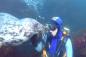 喉を撫でられてうれしそう!ダイバーに甘えたいさかりのアザラシ