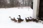 はい撤収撤収!勢いよく外に出てきたカモたちだが寒すぎて散歩を中止