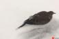 1羽だけ雪の上から飛び立たない鳥。足が凍った雪と張り付いていた(カナダ)