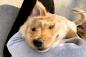 頭の真ん中に耳がひとつ、それでも元気に育っているゴールデン・レトリバーの子犬