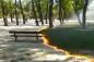 雪のように地面に積もったポプラの綿毛を焼き払う。でも大丈夫、芝生は燃えない(スペイン)