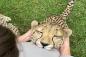 チーターだって甘えたい。耳の後ろをモフられるのが大好きなチーター、お姉さんにぺっとり張り付く(オーストラリア)