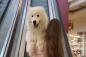 サモエドのフェリックスさん、エスカレーターで抱っこしてもらって嬉しそう