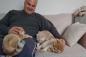 ねこざんまい。子猫たちに囲まれてうれしさがダダ洩れ中のお父さん
