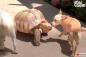 犬と亀、たとえ種族は違っても親友だよ!庭のケヅメリクガメになついてしまった保護子犬