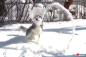 雪遊びのハスキー「エリザベスカラーってこのためにあるの?」と新たな楽しい使い道を発見してしまう