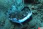 漁禁止区域で網にかかってしまったアカエイを救出するダイバー