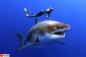 体長6メートルの巨大ホホジロザメと一緒に泳ぐダイバー