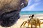 カニを見つめる犬のまなざしが真剣なのでコラ職人頑張る