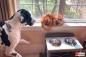 「そこ、ボクのご飯...いや何でもないっす」と、猫様には逆らえないグレートデン