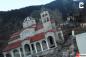 トリックアートではありません。ギリシャのゴーストタウンにある傾いた教会廃墟