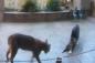 うららかな光の中でご飯を食べていた猫、ボブキャット先輩と遭遇!さあどうする?どうなる?!