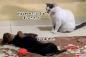 犬の当たり屋か?自ら猫に迫り、軽く触れられただけで大げさに倒れる