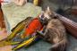 ウクライナの窓辺より「猫ちゃん可愛い!大好き!」とやたら構いたがるコンゴウインコに猫が反撃のヘッドロック?