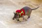 マイクのついたリュックを背負って、生存者の声を伝える救助用ネズミが訓練されている