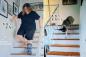 飼い主が足を骨折してからというもの、同じように階段を降りるようになった犬