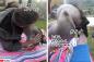 目の見えない老犬が飼い主に全力で喜びと愛情を示す姿