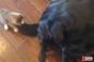 このふさふさのオモチャ超楽しい!自分のしっぽで遊ぶ子猫を優しいまなざしで見守る愛犬