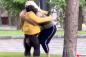 長い一日の仕事を終えた後ギュっとキツネを抱きしめる獣医。キツネは癒しの特効薬