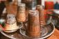インドネシア伝統の逆さまコーヒー「クピ・コプ」グラスを逆さまにして、ストローを刺して飲む。