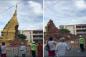 大雨で崩壊した仏塔から隠された財宝が現れる!拝む僧侶たち