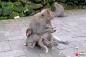 「こらこら、そっちに行かないの!」お猿のお母さん、じっとしていない子猿のしっぽを握りしめて安全確保