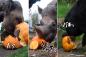 大型動物たちがカボチャを粉砕してパクつく、動物園のハッピーハロウィン