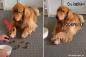 おとぼけゴールデン。飼い主が落としたおやつをしれーっと隠す