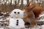 おとぎの国、ここにありました!リスがミニ雪だるまと遊んでいるよ