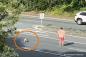 上手に歩くことができない赤ちゃん鹿を見守り、励ましながら自分の力で道路を横断させる母鹿