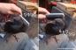 まだ足りん!カラスをブラシで撫でるのをやめると、わかりやすく催促してくる