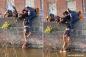 深い水路に落ちた犬を男子大学生らが一致団結し無事救助
