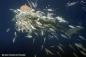 ジンベイザメに寄り添っても安全ではなかった。群がる小魚を食い荒らす魚の大群の存在が確認される