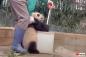 飼育員さん、手伝うよ!ちり取りにしがみついて掃除の邪魔をする子パンダちゃん