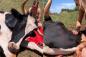 「お姉さん、なでなでして!」巨大な牛、女性に顔を撫でてもらってご満悦