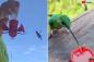 ハチドリってどうやって蜜を吸うんだろう?手に持っているフィーダーから直接食事をする様子に感動する男性