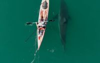 「また会えた!」よく見かけるホホジロザメがカヤックに近づき並んで泳ぐ、奇跡の光景