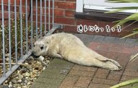 住宅街の玄関に迷子のアザラシがちょこん。郵便配達員が発見し無事保護